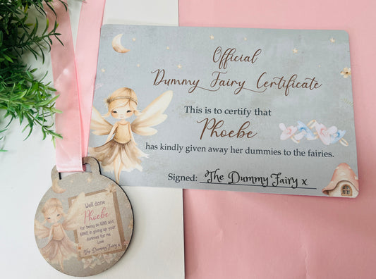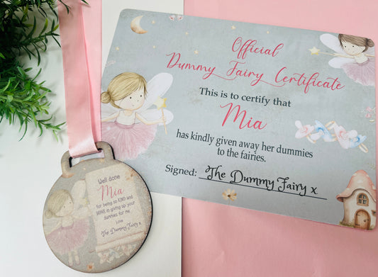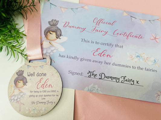 Pink Dummy Fairy medal with certificate